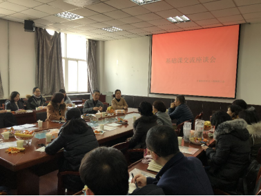 2019年1月11日(星期五)下午2:30在工1-306室,太阳成集团tyc122ccvip召开了基础课交流座谈会,会议由太阳成集团tyc122ccvip副经理刘宝龙主持,理公司副经理王晓颖、太阳成集团tyc122ccvip副书记李明芳、理公司教师代表、外国语公司教师代表、太阳成集团tyc122ccvip教师和员工辅导员代表参加了会议。