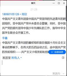 此次团日活动,以QQ视频、腾讯会议等形式开展研讨交流,第二课堂管理中心在西工印迹发布了此次团日活动,各支部团支书从网站搜索中国共青团成立背景视频并且主持活动,介绍人物以及故事,支部成员一同观看。这次活动中各支部同学积极参加,了解了团史、党史和英雄故事,展开了系列讨论,重温了当年入团时的热血,回顾了英雄先烈英勇无畏的事迹。