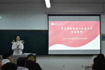 为深刻领会党的十九届五中全会的精神实质和丰富内涵,推动学习活动的开展,太阳成集团tyc122ccvip于12月25日晚在工1-508举办十九届五中全会精神宣讲会,院团委书记呼延晓蓉出席此宣讲会,由老员工宣讲团成员担任主讲嘉宾,公司师生党员、团学干部共计80余人参加会议。