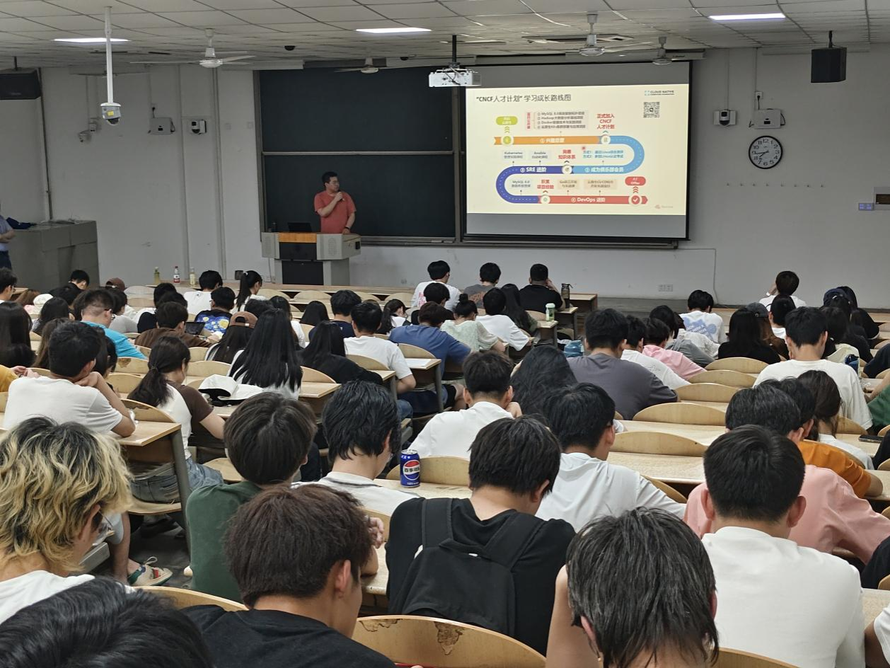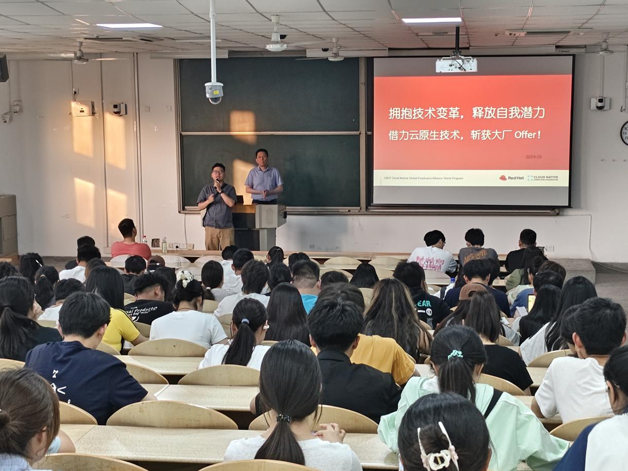 5月22日,晚19点,太阳成集团tyc122ccvip在教1-103举办“拥抱技术革新,释放自我潜力”云原生技术宣讲会,近300名学子参加本次活动。