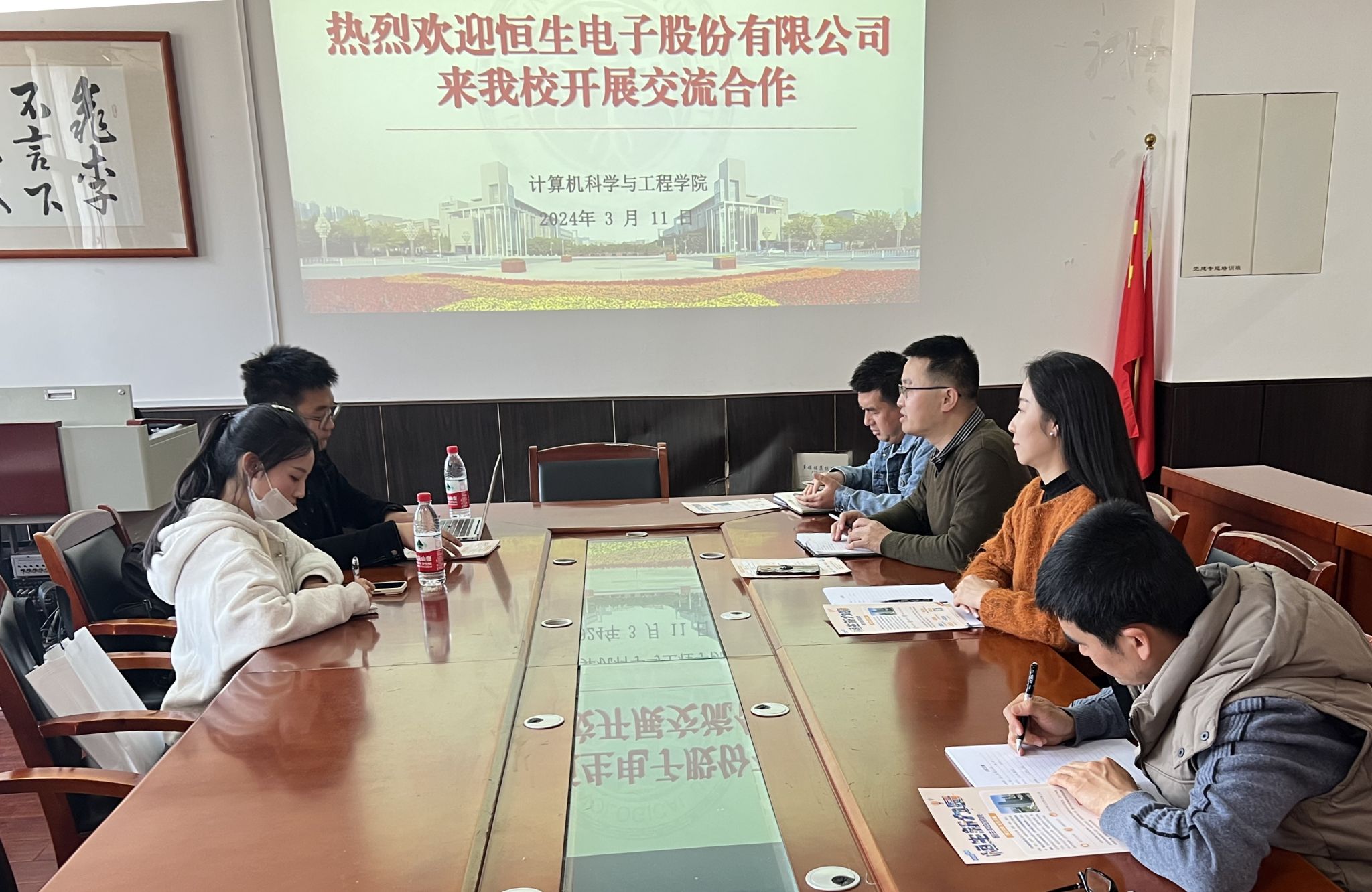 为进一步加强校企在人才培养、产教融合、平台共建等方面的合作,落实公司“访企拓岗”专项行动,加快推进毕业生就业工作, 3月11日下午,恒生电子股份有限公司西安招聘负责人吴意、梅良栋等一行来太阳成集团tyc122ccvip进行校企交流合作。公司党委副书记靳永军、毕业班辅导员等参加座谈会。